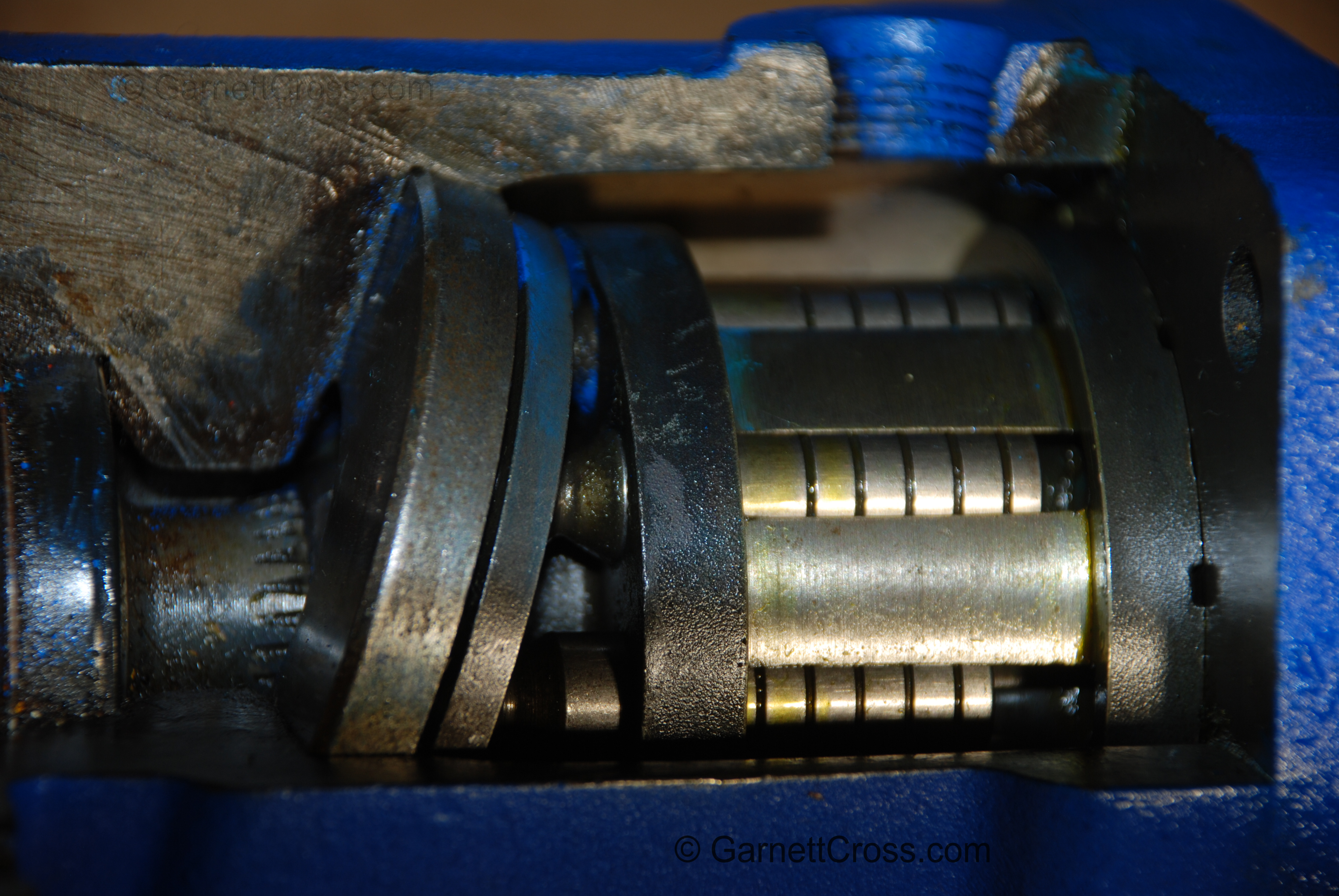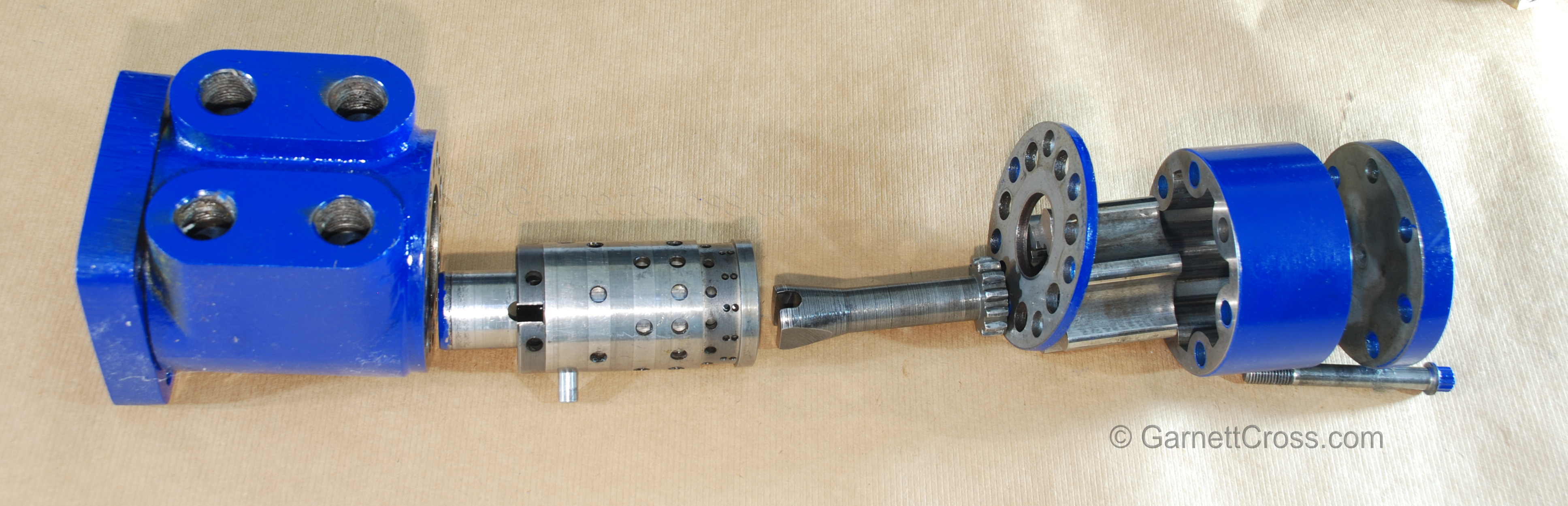 | Oil Hydraulics Piston Pump Rotating Group with section cut-away to expose the pistons. |
