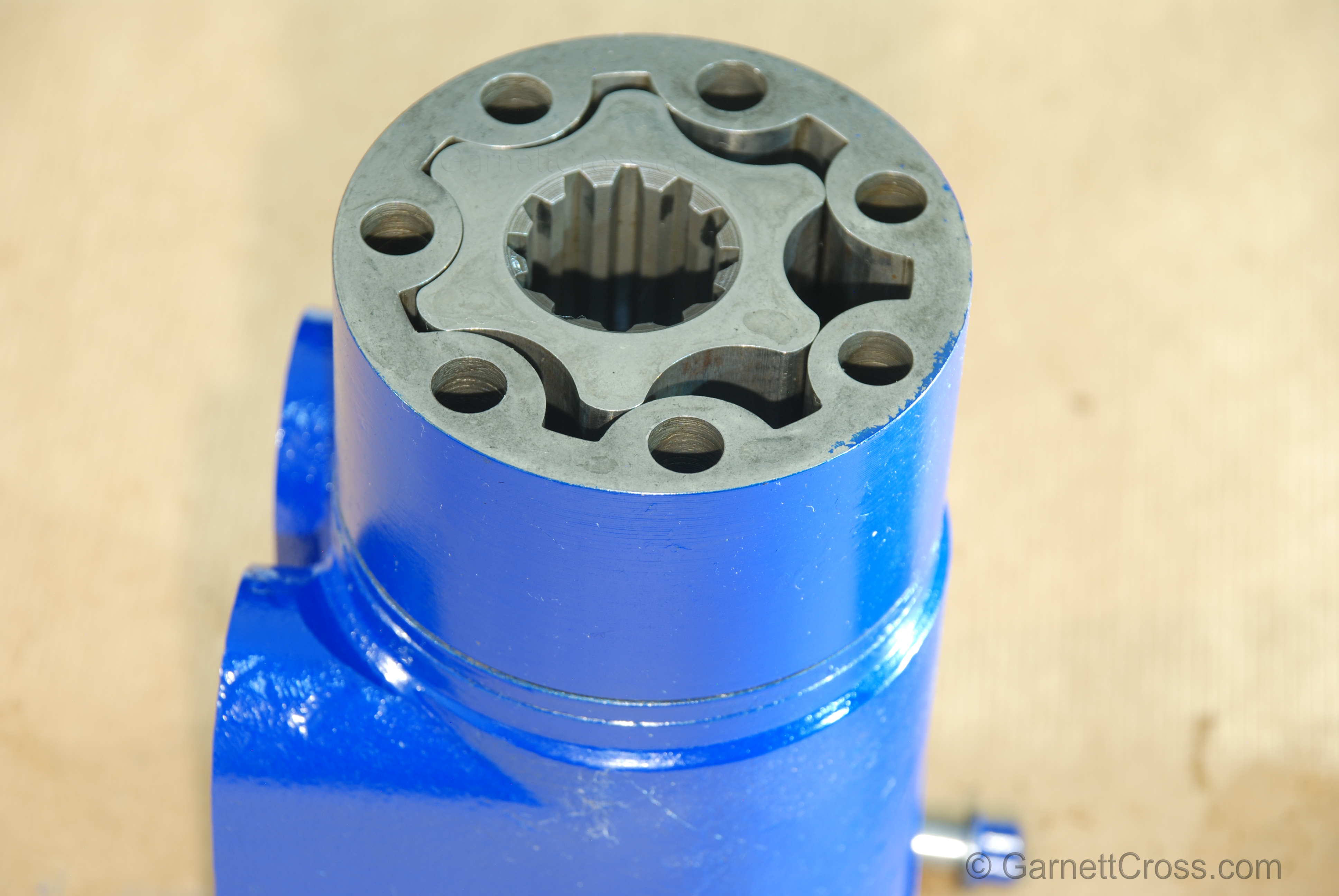 | Oil Hydraulics Orbitrol Steering Valve Rotor in correct position for assembly. |