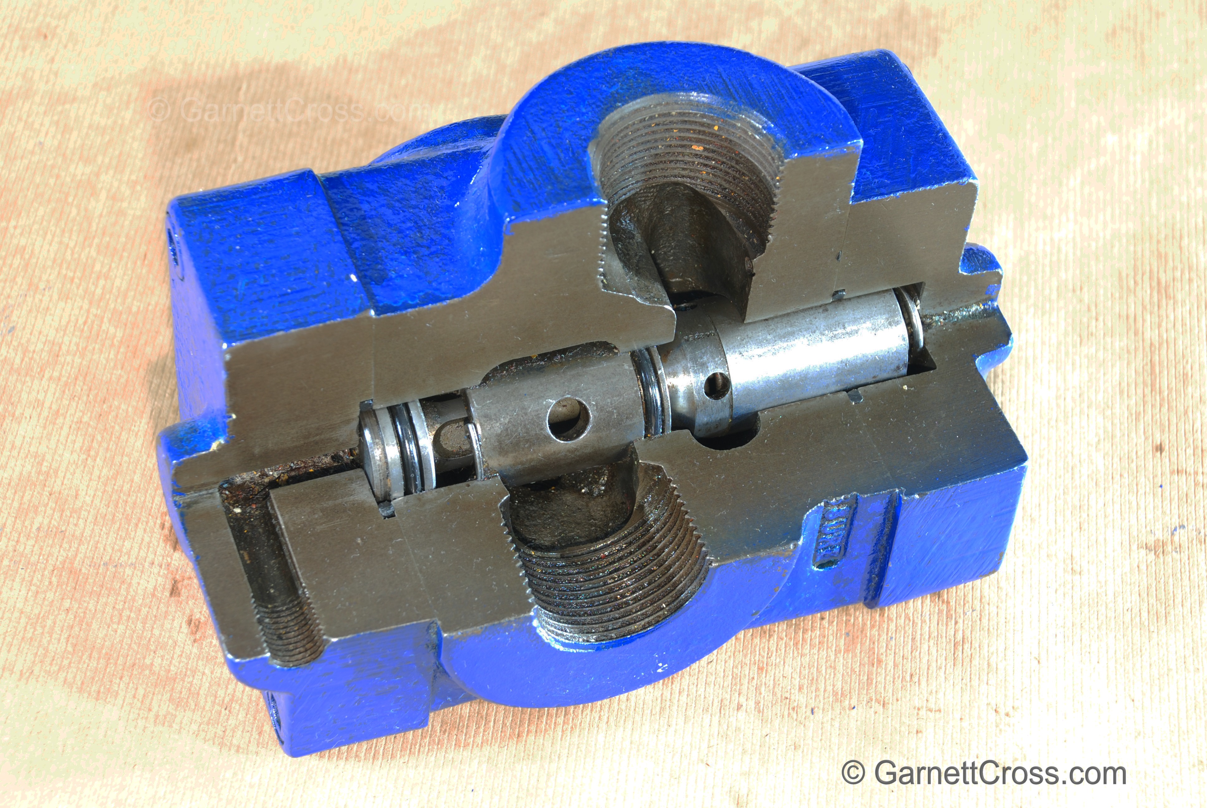 | Oil Hydraulics Check Valve cross section. Note: Check valves must be sized according to flow rate and not thread size. |