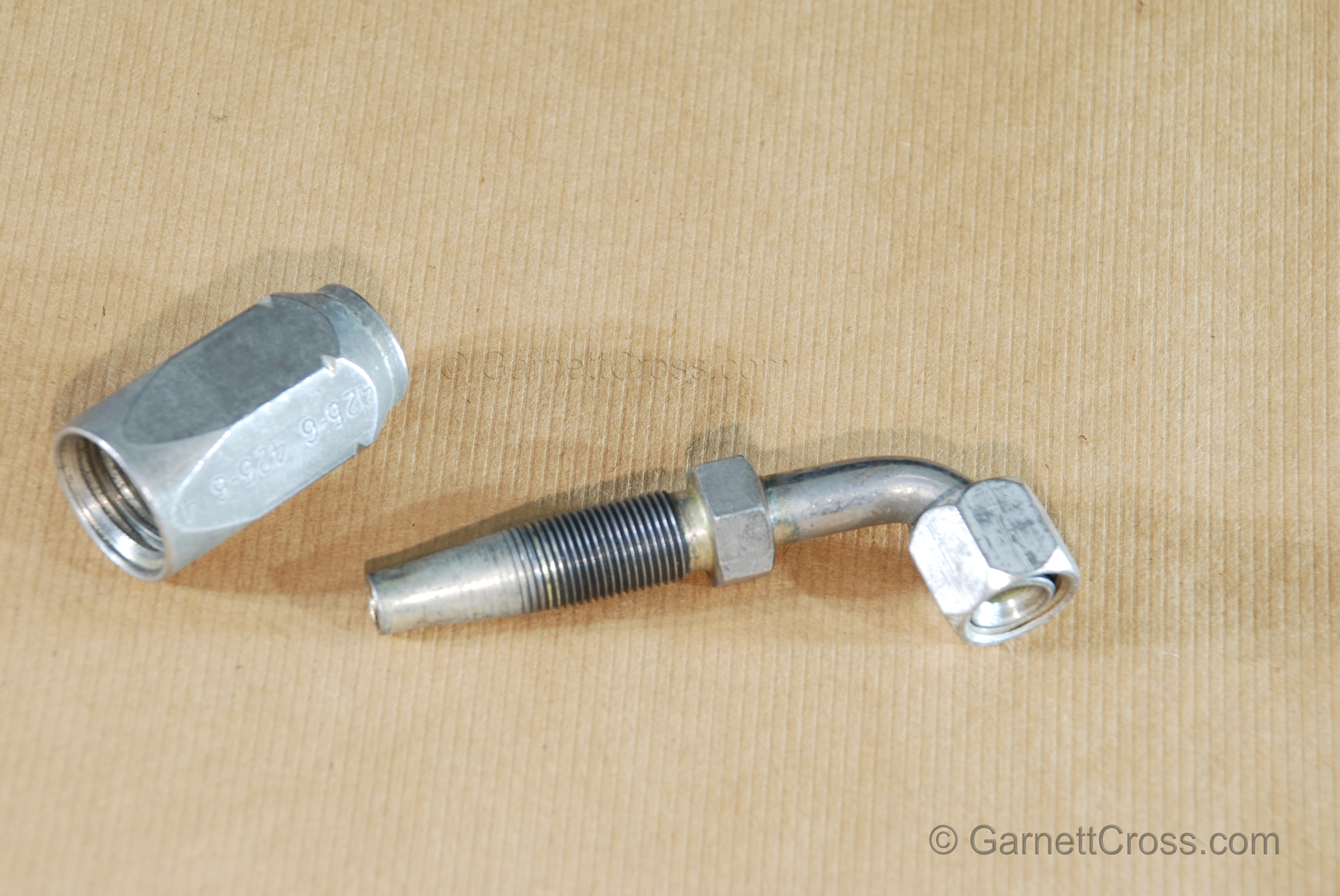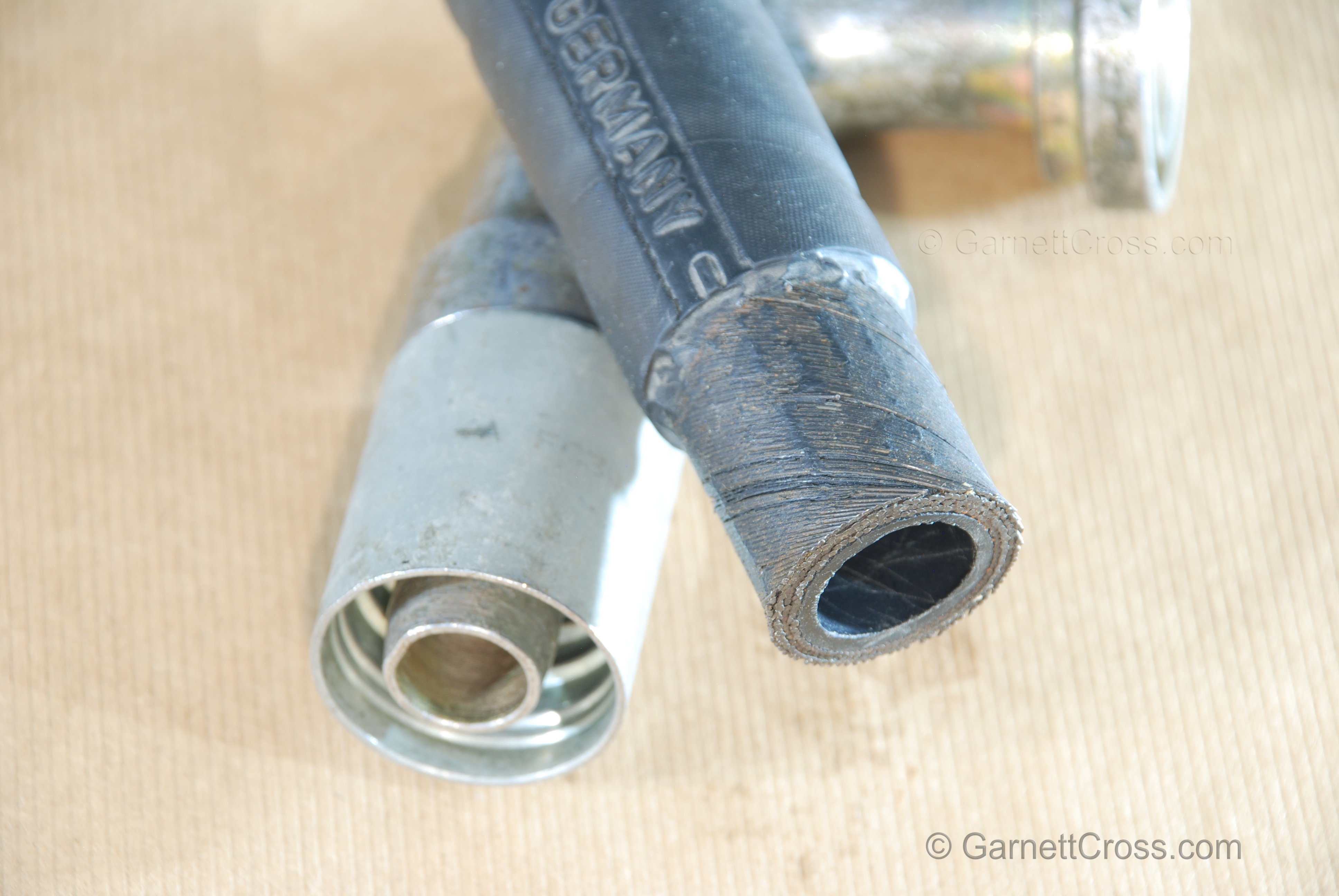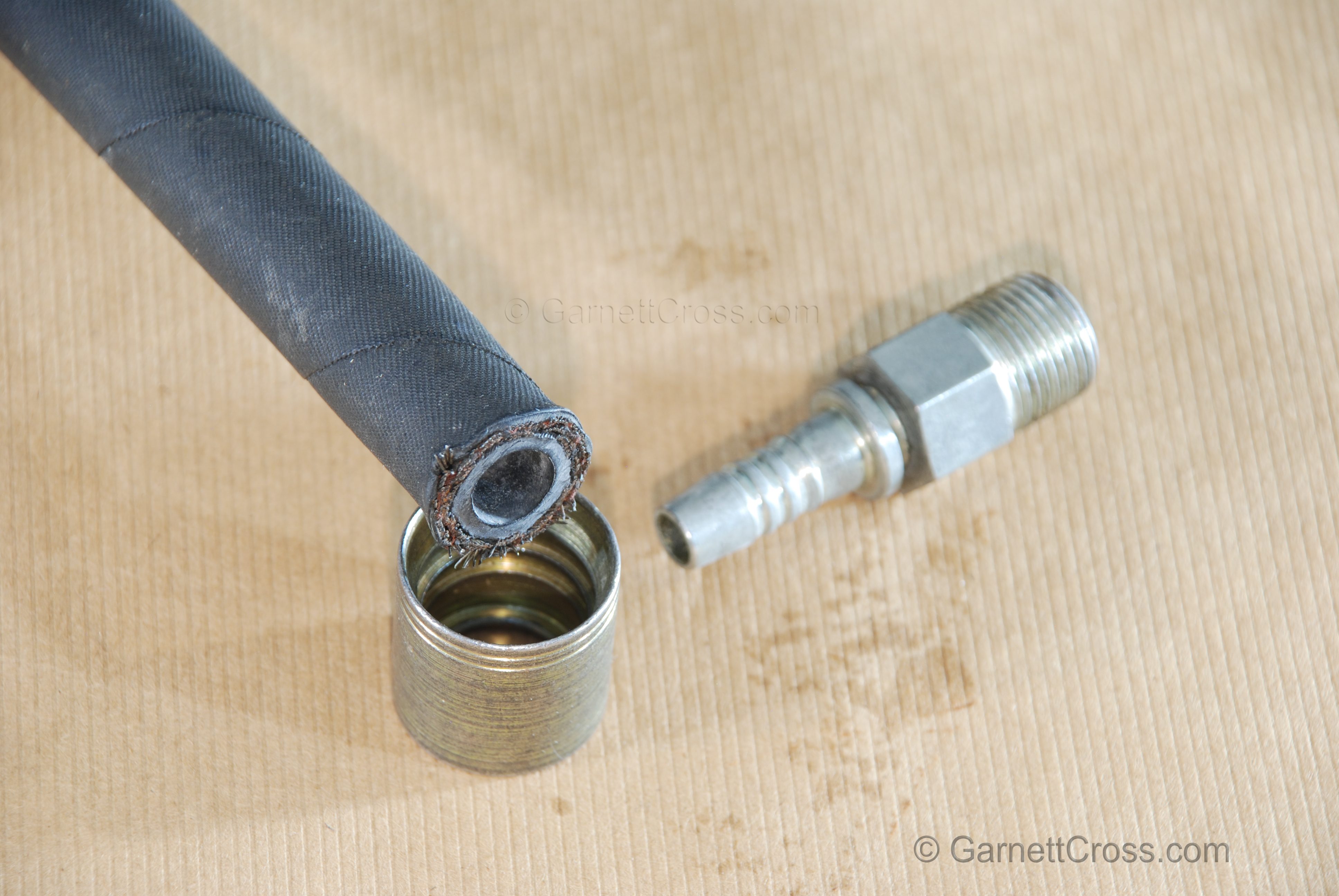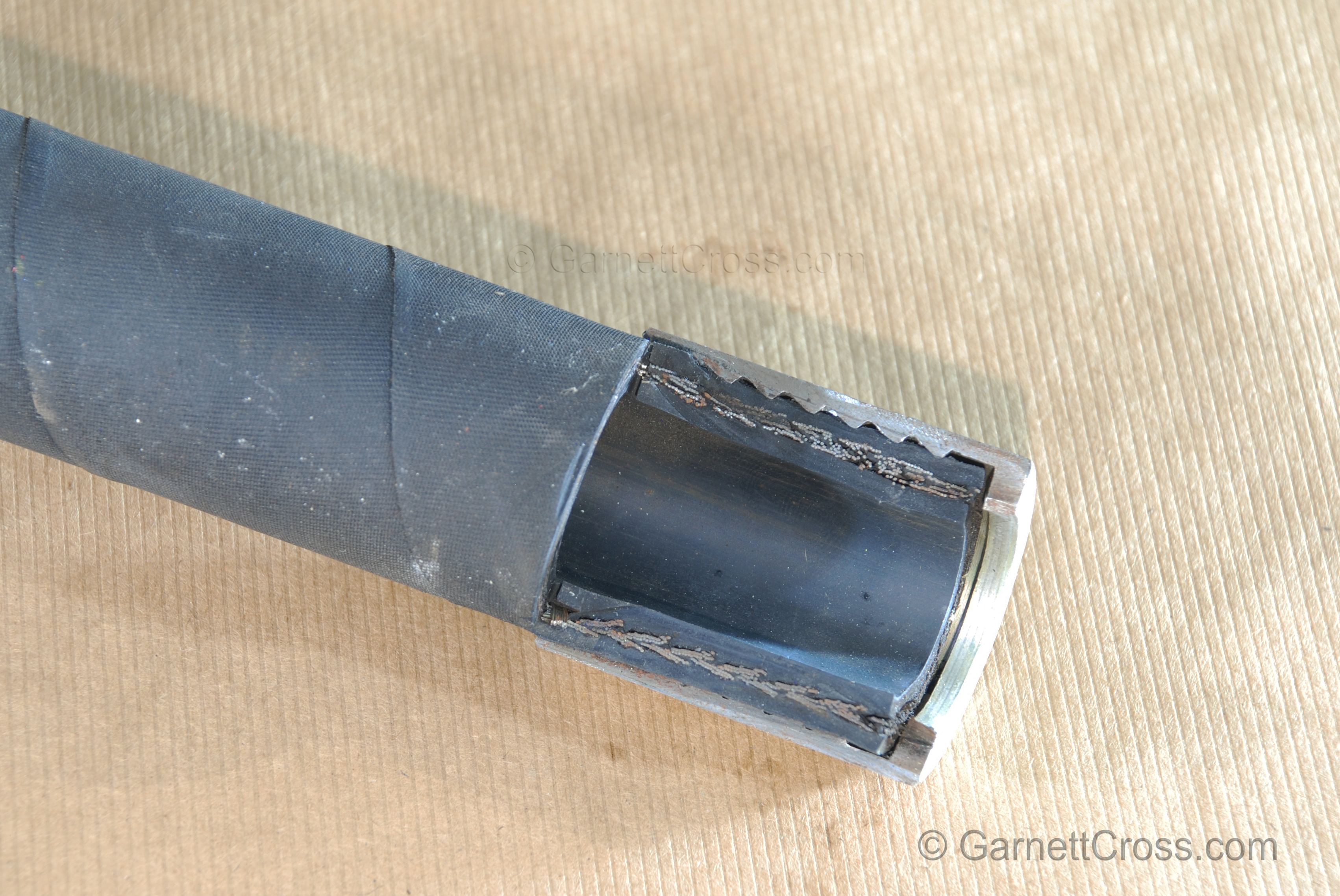 | Oil Hydraulics Rubber Hose Double Braided reinforcing and swage fitting. Note: Never reuse a section of a host that has previously been compromised. |