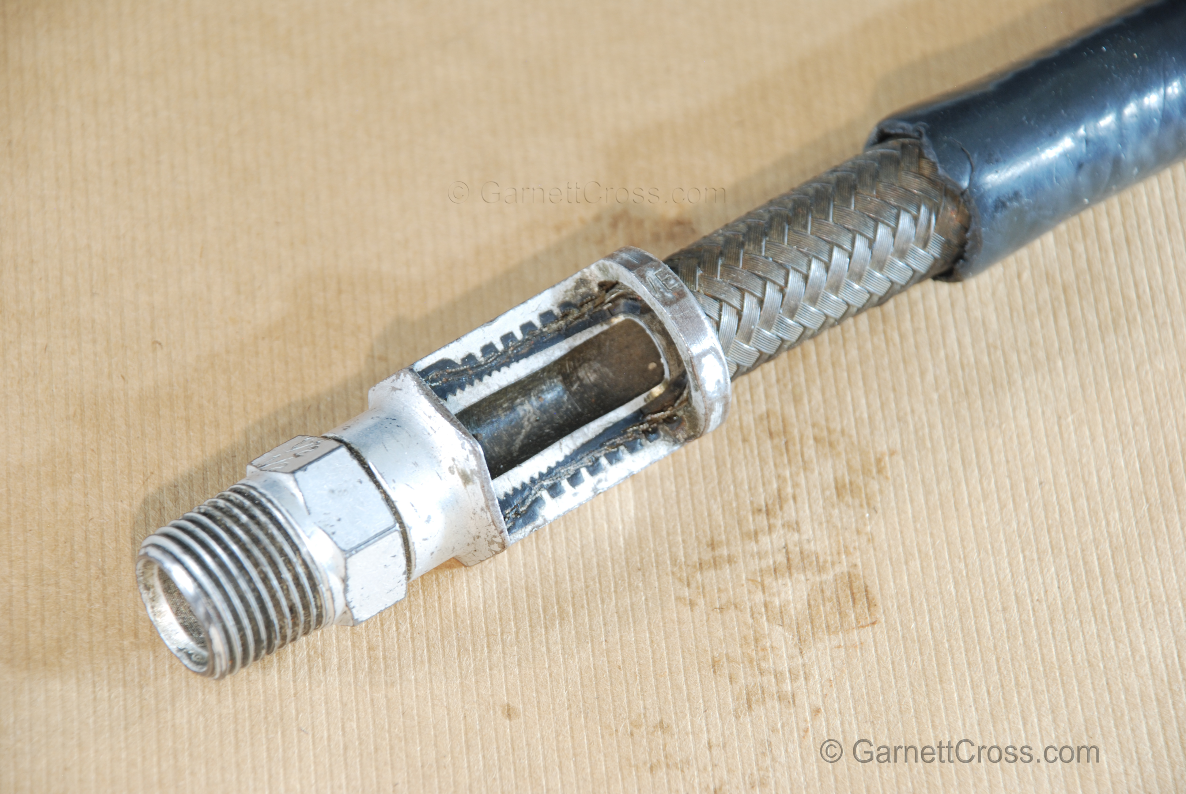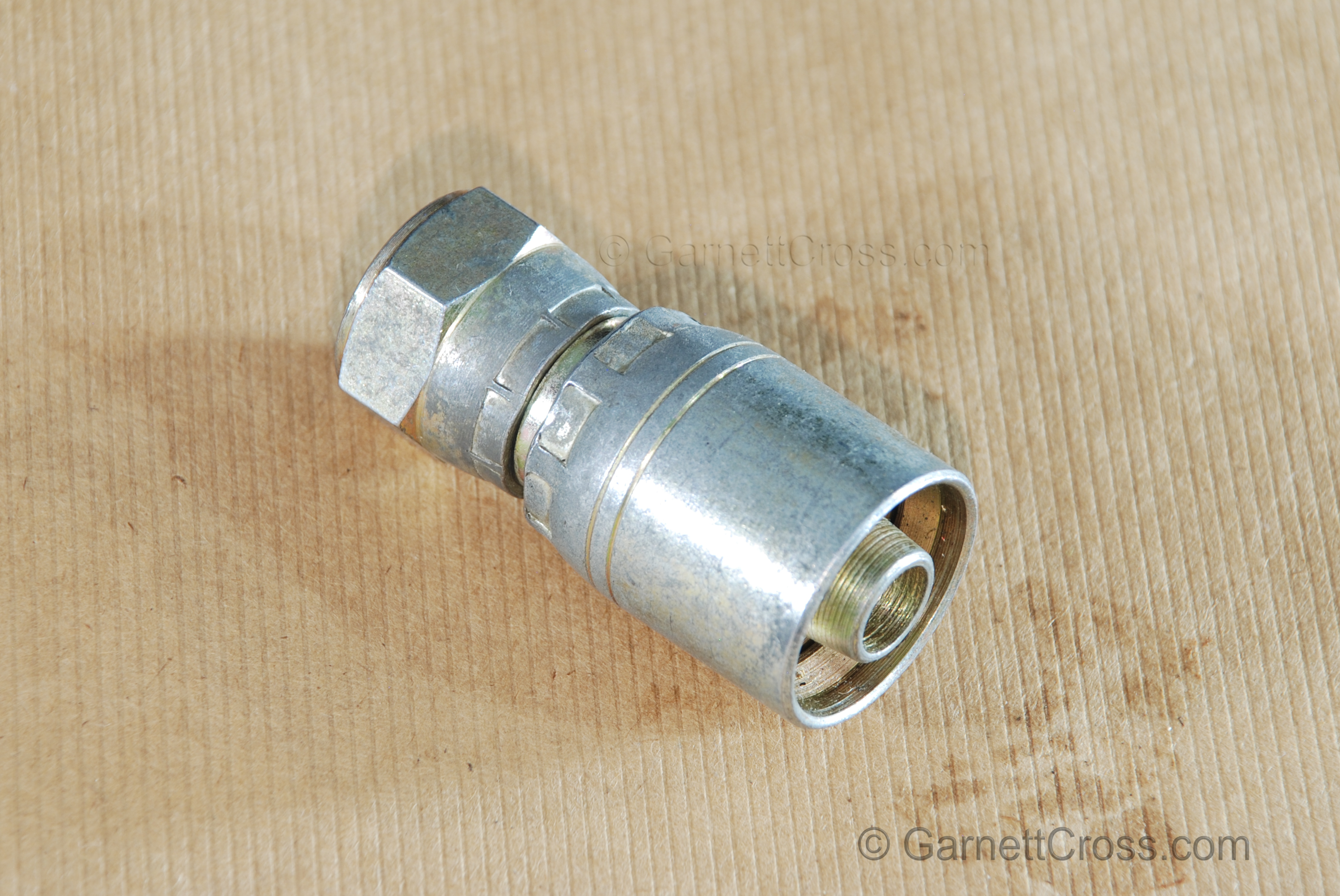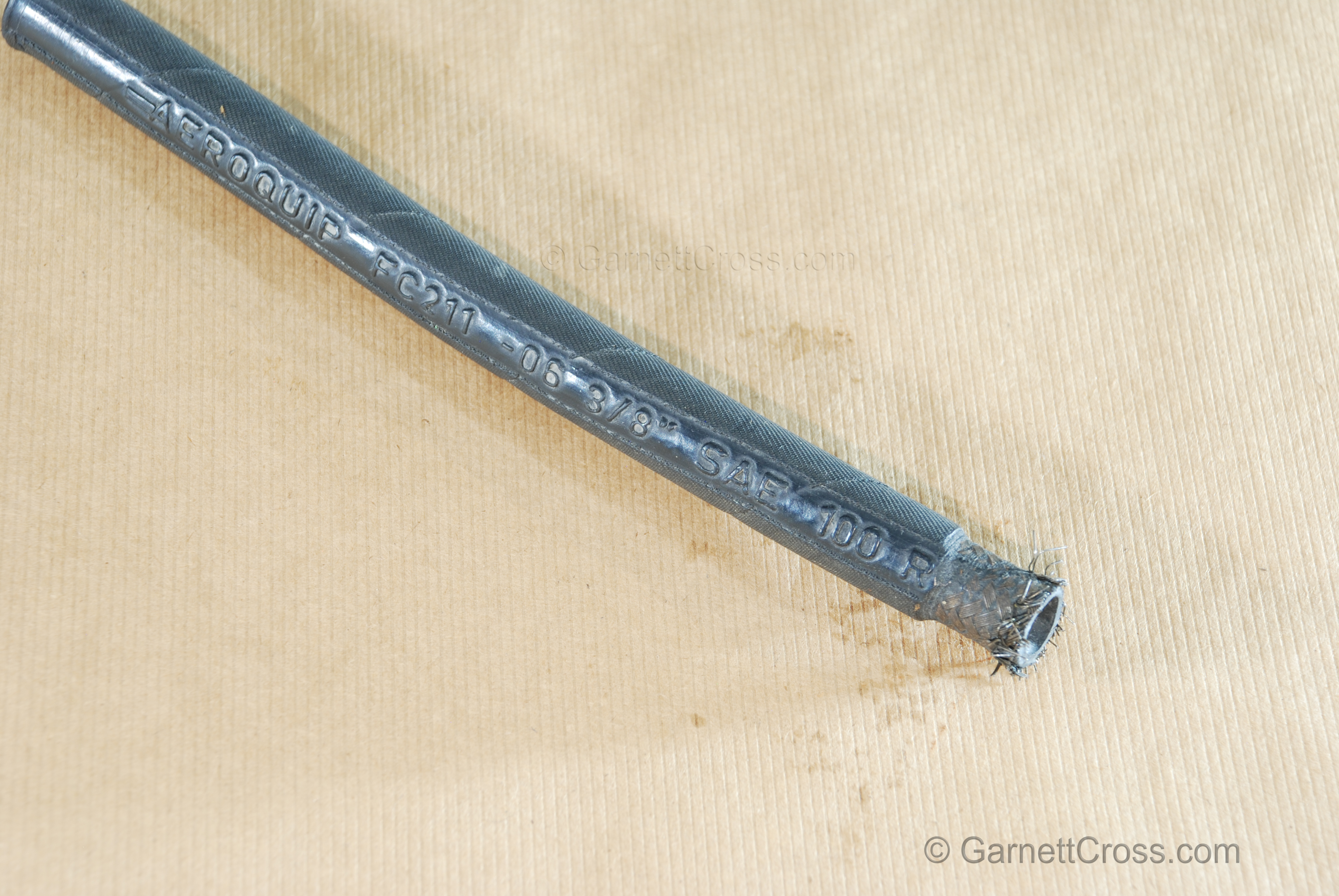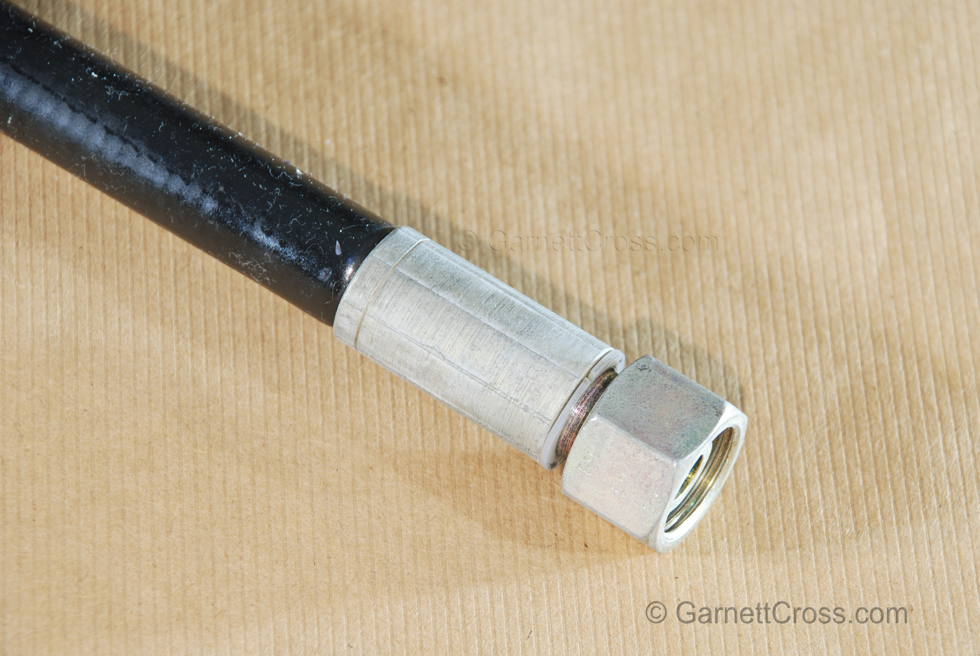 | Oil Hydraulics Rubber Hose Double Braided reinforcing and swage fitting. Note: Never reuse a section of a host that has previously been compromised. |