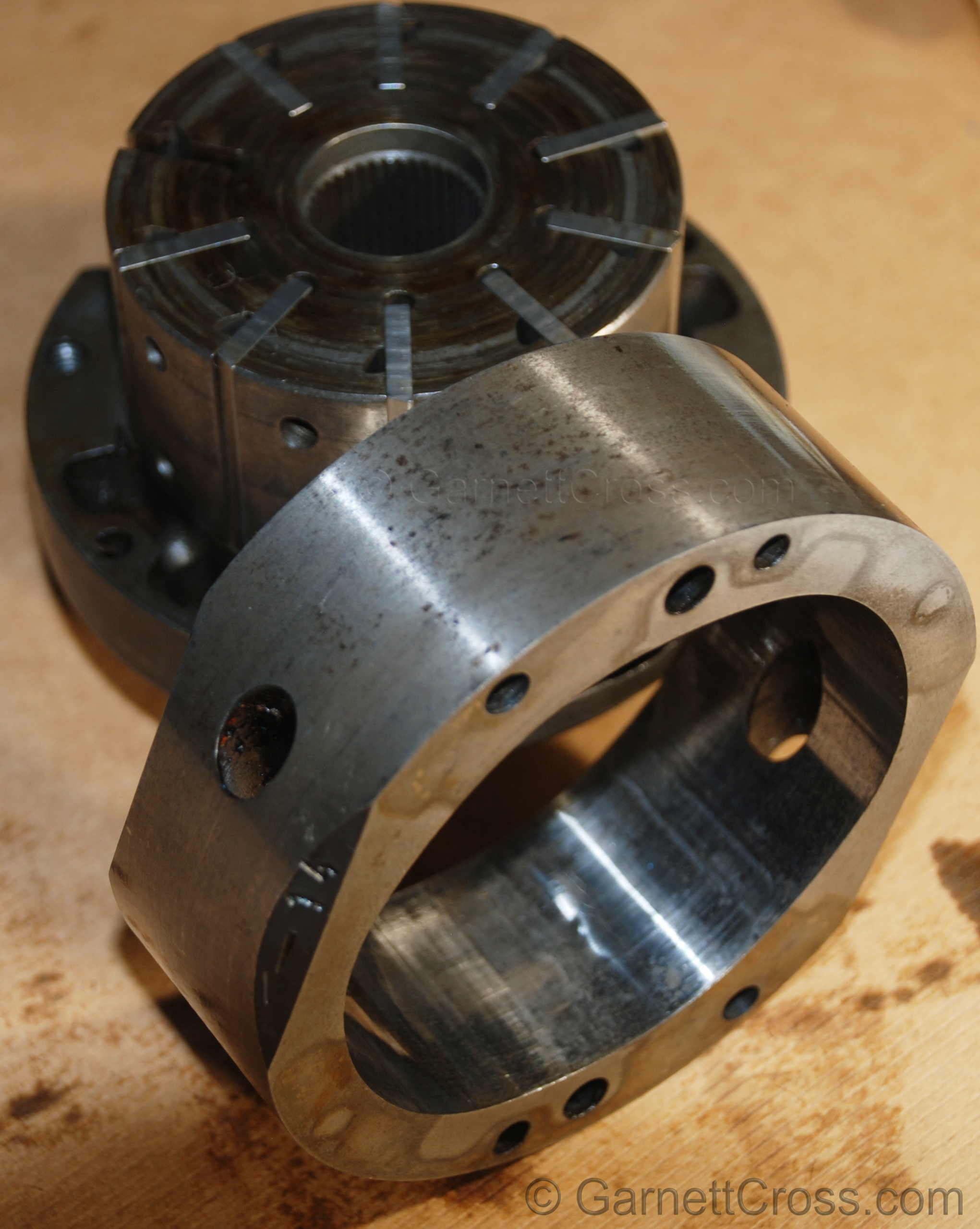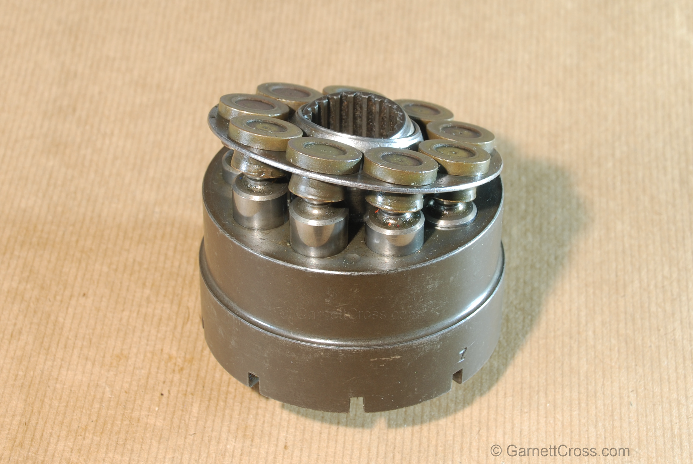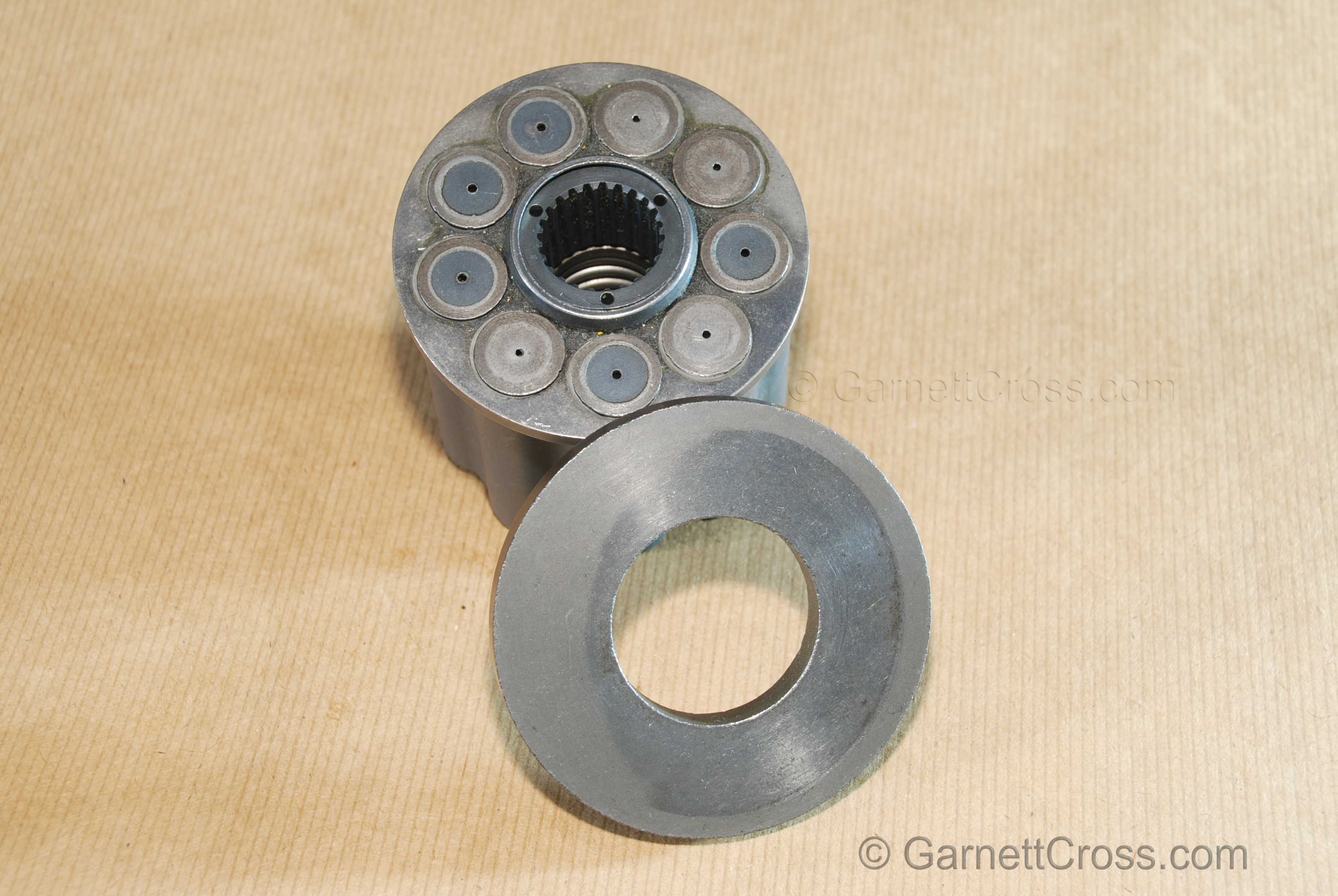 | Oil Hydraulics Piston pump rotating group Note: Signs of damage due to undersized intake pipe, flattened shoes and worn swash plate |