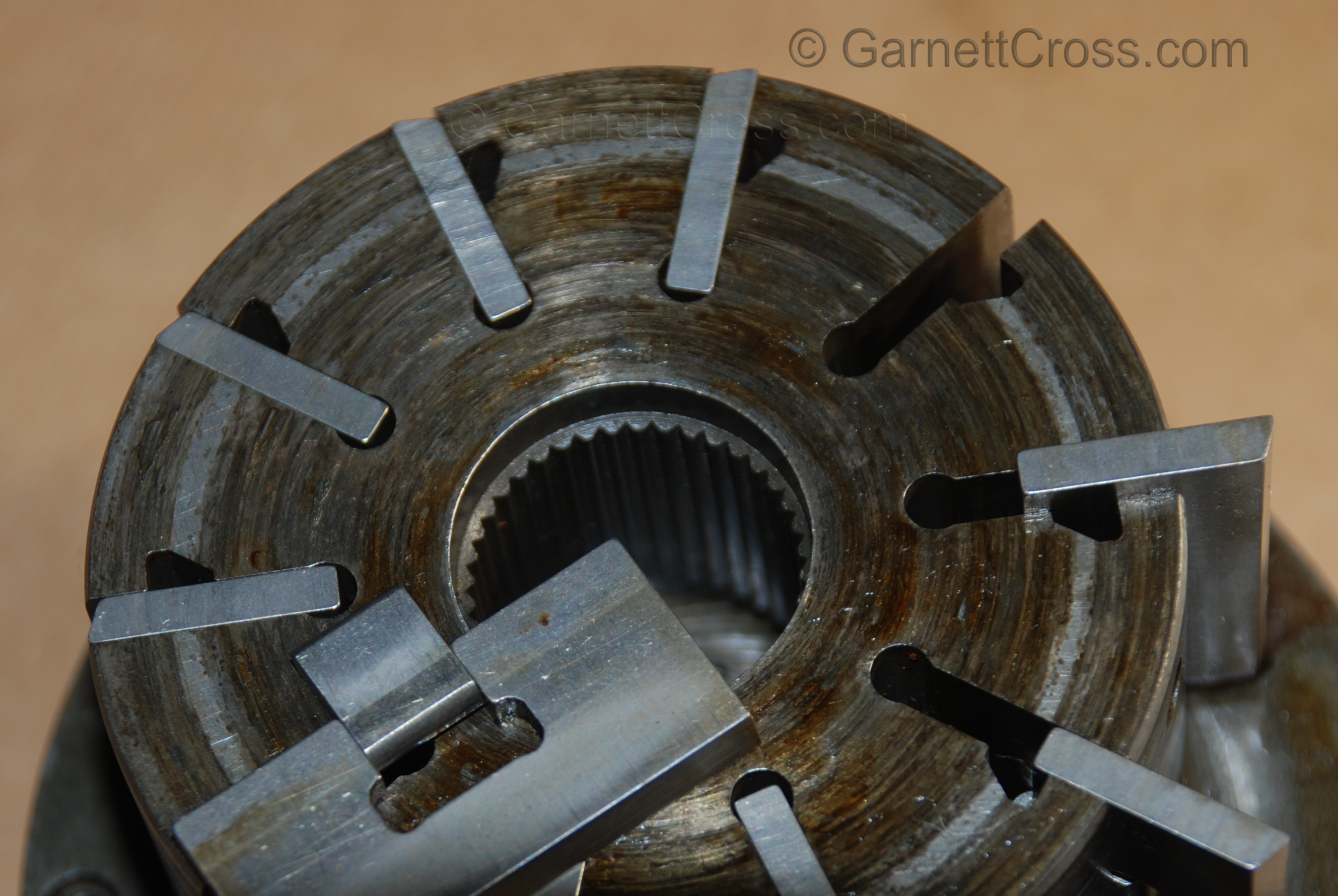 | Oil Hydraulics Vane Pump Rotor,Vanes and Vane Insert (Intra-vane) visible Note: Not all the vanes are not installed in the same direction in this image. |